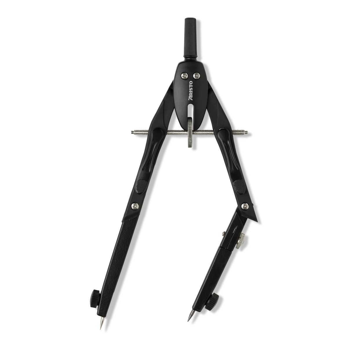 De passer heeft een spindel met middenwiel voor fijnafstelling om de straal van de circel nauwkeurig af te stellen.